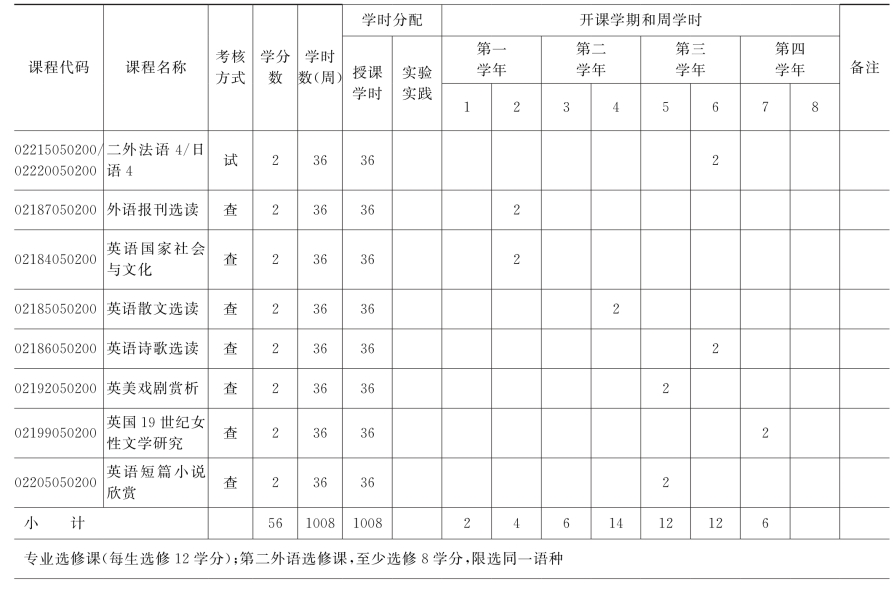 (四)选修课安排表