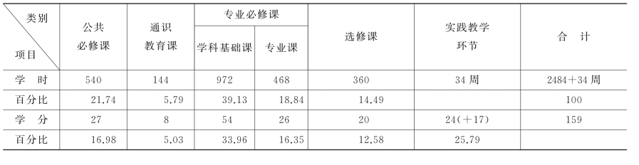 (六)各类课程学时学分分配比例表
