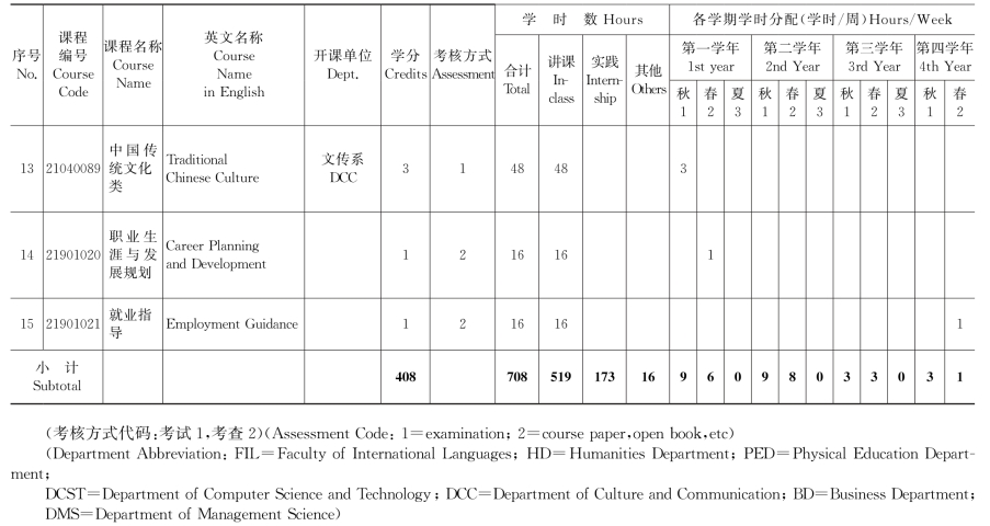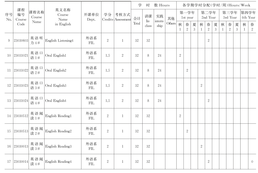 莆田学院英语专业2013级课程表