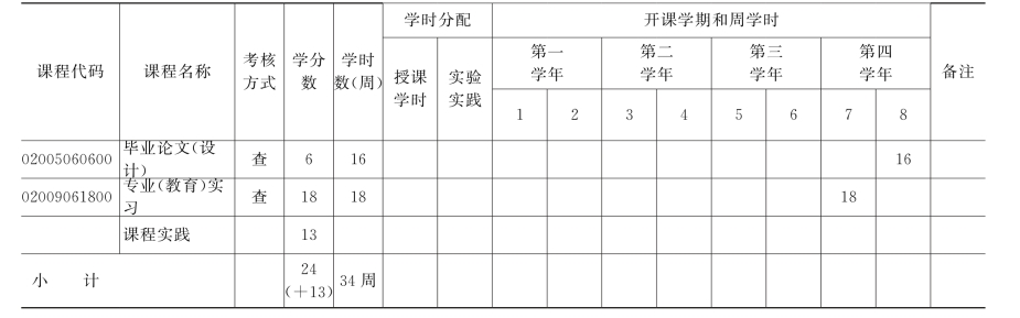 (五)实践教学环节安排表