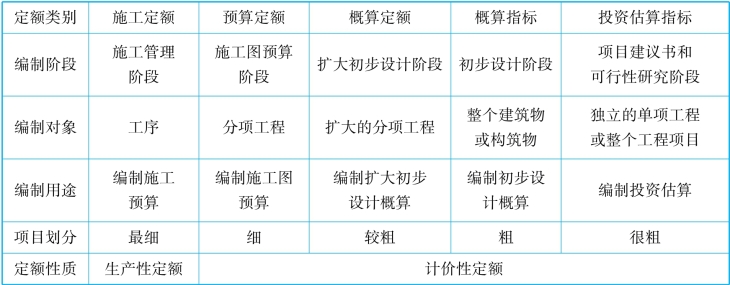 各种定额间的关系比较见表2.1。