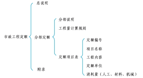 市政工程定额由总说明、分部定额、附录3个部分组成,如图2.1所示。