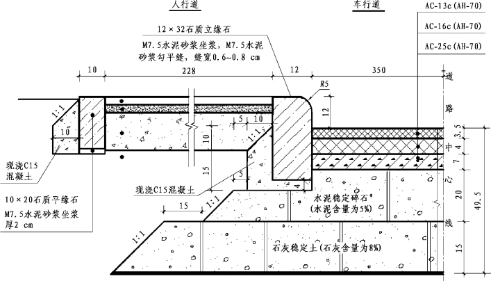 图5.32 沥青混凝土路面示意图(单位:cm)