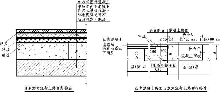 透层、粘层的工程量以“m2”计量。关于透层和粘层在沥青路面结构图中的具体位置如图5.30所示。