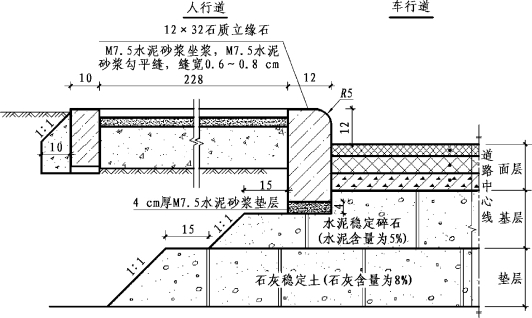图5.41 某市政道路的路面结构图的半断面(单位:cm)