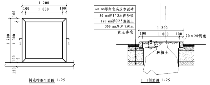 ②工作内容。树池砌筑的工作内容包括基础、垫层铺筑,树池砌筑和盖面材料运输、安装。