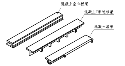 图5.67 混凝土空心板梁、T形连续梁、箱梁示意图