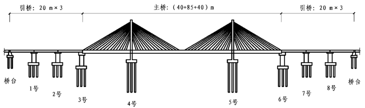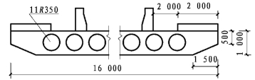 【例5.26】 某市政斜拉桥全长285m,桥面宽16m,最大跨度165m,桥梁立面图如图5.72所示,引桥主梁截面如图5.73所示。试根据《计价定额》计算引桥主梁(空心板梁)工程量。