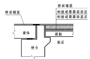 ③规则解读。混凝土桥头搭板是由混凝土浇筑而成的用于防止桥端连接部分的沉降而采取的措施,位于机动车道区域内桥台或悬臂梁板端部和填土之间,随着填土的沉降而能够转动,即使台背填土沉降也不至于产生凹凸不平。桥台搭板的布置示意图如图5.69所示,其工程量按设计图示尺寸以“m3”计量。