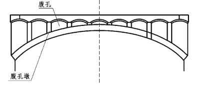 ③规则解读。混凝土拱上构件是指拱桥拱圈以上由混凝土组成的各部分结构的总称。一般多指空腹式拱上结构的腹孔和腹孔墩。空腹式拱上结构示意图如图5.66所示,其工程量按设计图示尺寸以“m3”计量。