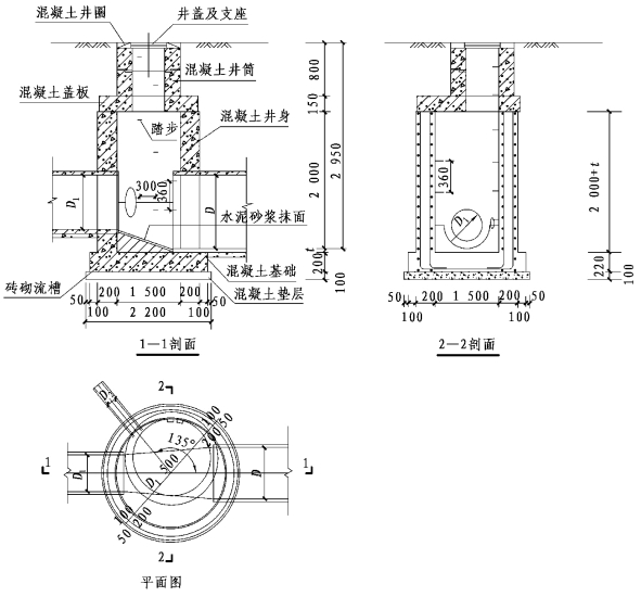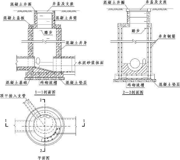 ②规则解读。一般来说,检查井的井垫层均为C10或C15的素混凝土,详见图5.100至图5.102中相应构造。
