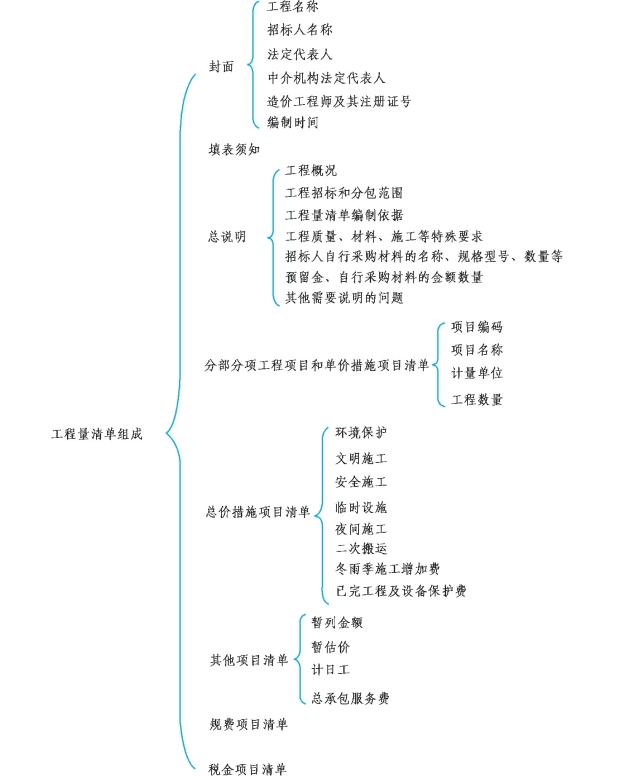 工程量清单应按《建设工程工程量清单计价规范》(GB 50500—2013)和《市政工程工程量计算规范》(GB 50857—2013)统一要求的格式进行编制。工程量清单由封面、填表须知、总说明、分部分项工程项目清单、措施项目清单、其他项目清单、规费和税金项目清单组成,如图5.105所示。