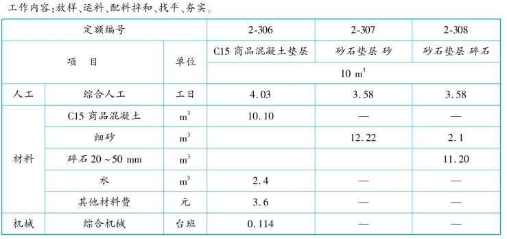根据《全国统一市政工程预算定额》定额编号2-306重新计算工程量综合单价,2-306定额见表6.5。