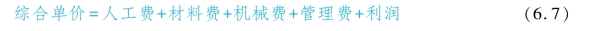 对于传统的消耗量定额,相应费用的计算公式参见式(6.2)至式(6.4);对于计价性定额,如《四川省建设工程工程量清单计价定额》,可以直接采用定额已有的人工费、材料费和机械费。
