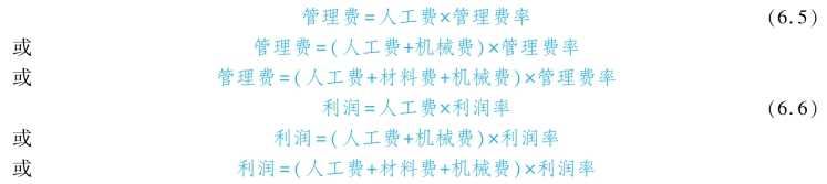 对于传统的消耗量定额,管理费及利润的计算见下列各式: