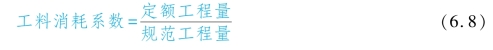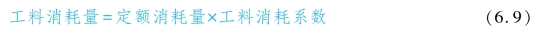 第3步:用第2步中得出的定额工料消耗系数乘以对应定额的消耗量,得到工料消耗量。工料消耗量的计算公式见式(6.9)。