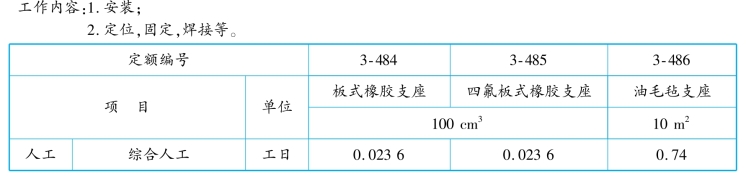 《计算规范》(项目编码040309004028)规定橡胶支座以设计图示数量计算,计量单位是“个”;而定额(定额编号3-484,见表6.7)规定板式橡胶支座按体积计算,计量单位为“cm3”。