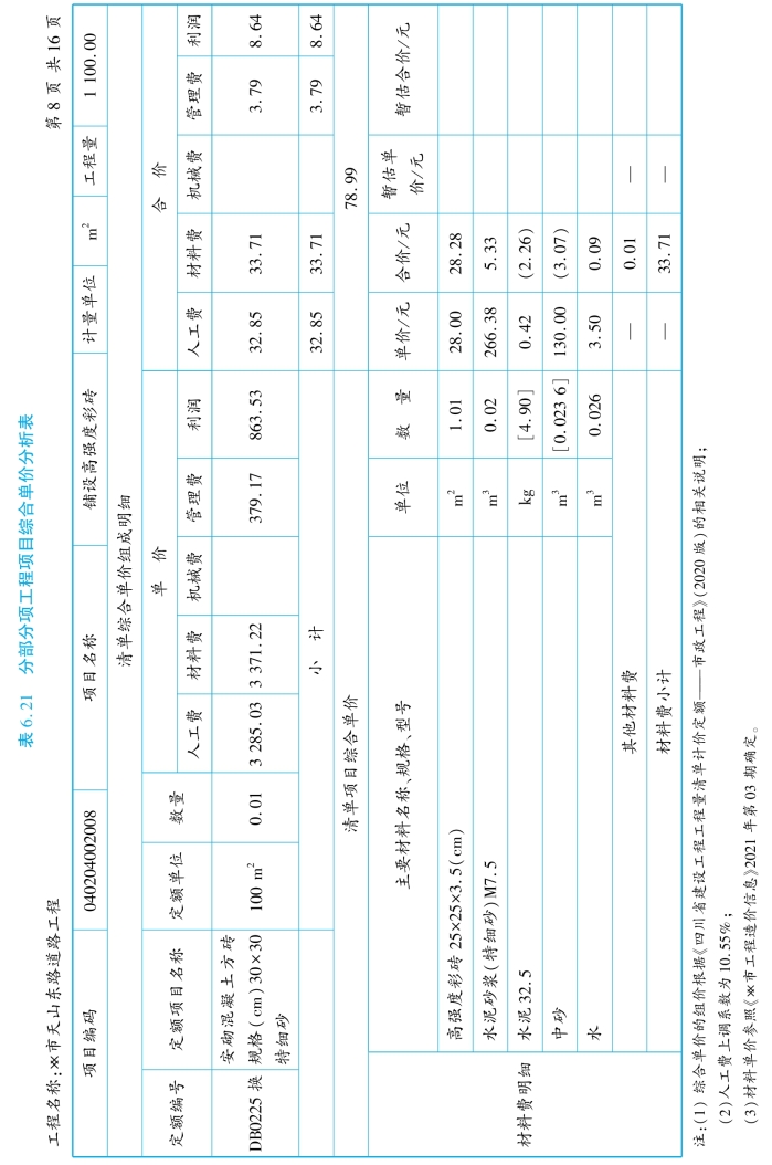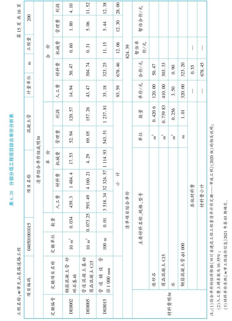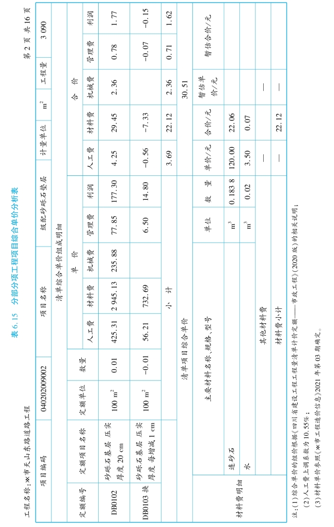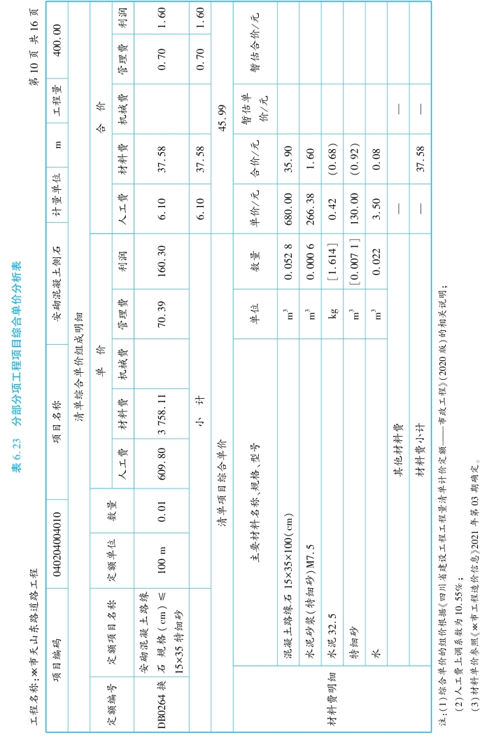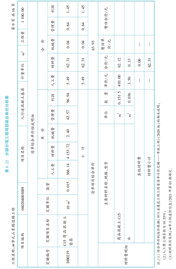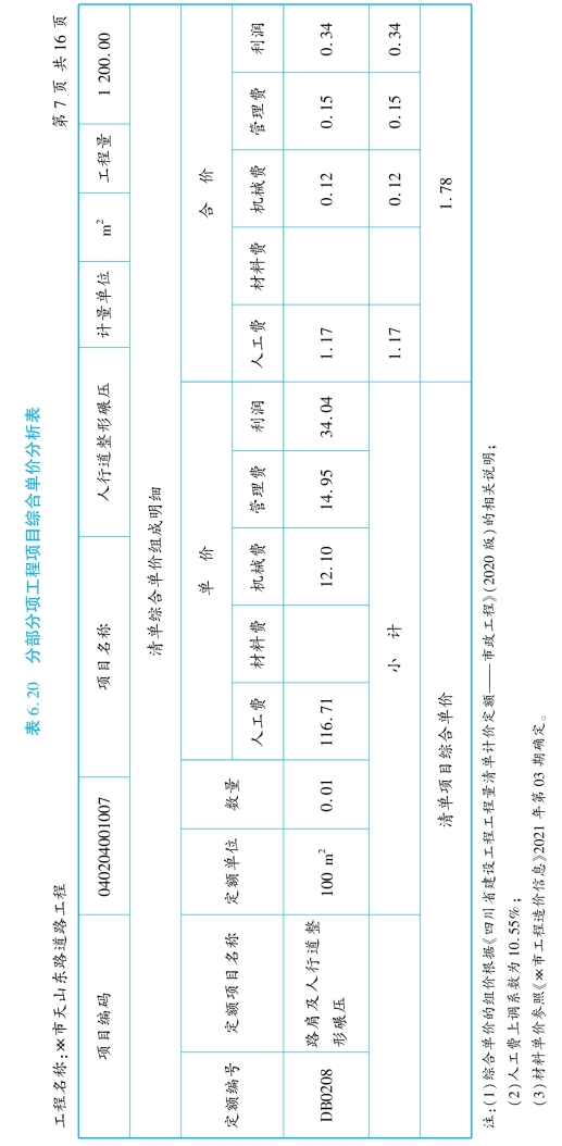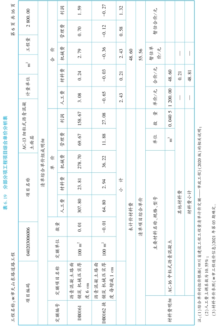 【例6.7】 根据《建筑安装工程费用项目组成》(建标〔2013〕44号)、《建设工程工程量清单计价规范》(GB 50500—2013)、《市政工程工程量计算规范》(GB 50857—2013),编制“××市天山东路道路工程”的“分部分项工程项目清单与计价表”。