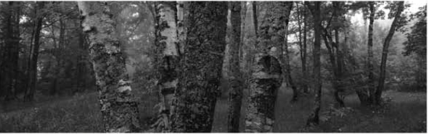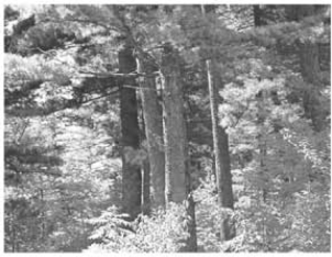 在树木线上,树木为了生存,都变得矮小和弯曲了。生长了一个世纪的树干,只达到人们腰部那样高。有些树木好像藤条伏地而生,被无数的雪块压得弯弯曲曲。从不停息的风使其他的树木也改变了形状,就像一串一串的树枝,在背风处飘荡。