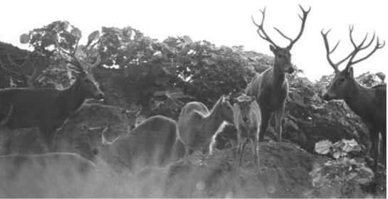 从6月下旬至7月,麋鹿开始交配。在此期间,平时温驯的公麋鹿互相挑衅。按照麋鹿群的等级制,只有成年的公麋鹿才有优先取食和与母麋鹿交配的特权。成年的公麋鹿居于统治地位,而尚未成年的麋鹿居于最低的地位。公麋鹿之间为交配而竞争,标志着交配期的开始。这时,保护区里所有的麋鹿,都分成了三个小组。每个小组占有自己的地盘,每个地盘中间,有一棵大树作为标志。相互之间,距离很短。在交配季节里,当公麋鹿为占有母麋鹿而战斗时,其茸角相互碰撞的声音随时可以听到。这场战斗一直进行,直到其中一只成年的公麋鹿夺得了与母麋鹿的交配权为止。麋鹿与马鹿不同。麋鹿除了第二年4月~5月很短的生产期和10月~12月茸角脱落期以外,一年四季,都保持群居。