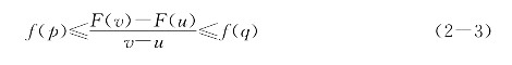 定义2 (甲函数和乙函数)设函数F(x)和f(x)都在数集S上有定义,若对S中的任意两点u<v,总有[u,v]∩S中的p和q,使有不等式