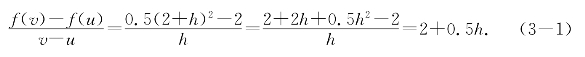 解 将抛物线方程写成函数形式y=f(x)=0.5x2,取u=2,v=2+h,P=(u,f(u))=(2,2),Q=(v,f(v))=(2+h,0.5(2+h)2)并计算差商
