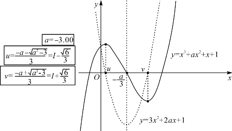 图4-9 函数f(x)=x3+ax2+x+1的单调区间