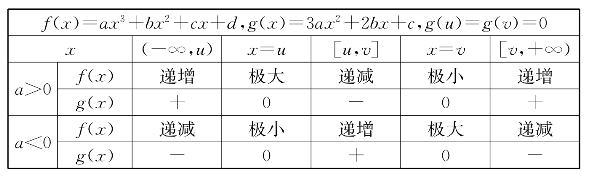 表4-1 三次函数的增减性和极值(b2-3ac>0情形)