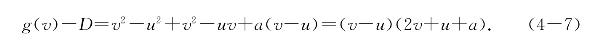 因为(v-u)>0,故当v>u≥-时,上面两式都为正,即g(u)<D<g(v),说明在