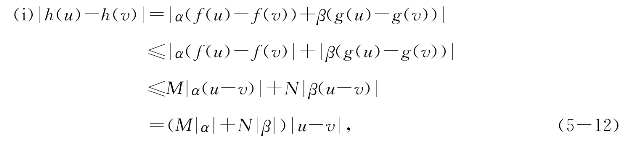 证明 分别记f(x)和g(x)在[a,b]上的李普西兹常数为M和N,则对任意[a,b]上的u和v有