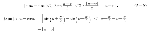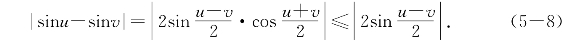 例题5—5 求证函数sinx和cosx都在(-∞,+∞)上差商有界,且对任意两点u<v有不等式