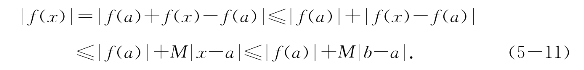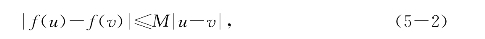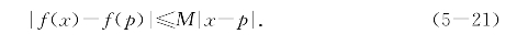 若f(x)在闭区间[a,b]上差商有界,称f(x)在[a,b]上满足李普西兹(R.Lipschitz,1832—1903)条件.不等式(5-2)中的正数M叫做f(x)在[a,b]上的一个李普西兹常数.显然,李普西兹常数不是唯一的.