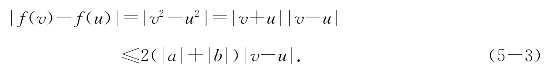 例题5—2 求证函数f(x)=x2在(-∞,+∞)上差商有界,并求它在区间[a,b]上的一个李普西兹常数.