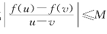定义4 (差商有界函数)设函数f(x)的定义域S由有限个区间组成.如果对于S的任意闭子区间[a,b]都有正数M,使得[a,b]中任意两数u和v都满足不等式