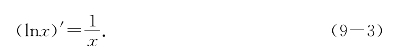 例题9—3 求函数y=ln|x|在(-∞,0)∪(0,+∞)上的导数.