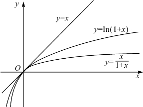 例题9—1 求证<ln(1+x)<x. (9-8)