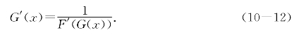 此命题涉及反函数存在性,其证明放在第18讲中(命题18.5).为了加深对这个公式的印象,可以对反函数的定义等式F(G(x))=x两端求导,由链式法则得F′(G(x))·G′(x)=1,这样自然得到了(10-12).