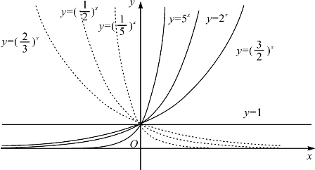 命题10.2的证明留给读者.图10-2是不同底的几个指数函数的图象.