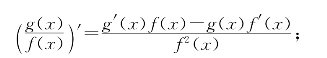 就法则而言,由于(αf(x))′=αf′(x)是函数乘积公式的特殊情形,故(i)可以简化为函数和的求导法则即(f(x)+g(x))′=f′(x)+g′(x).函数积的求导法则,前面已经指出可以用取对数求导的方法导出.类似的,函数商的求导法则也可以用取对数求导的方法导出.也就是