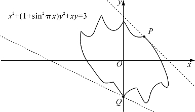 图12-2 曲线x2+(1+sin2πx)y2+xy=3及其切线