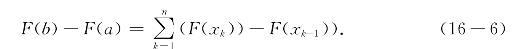比较(16-9)与(16-6)可以发现,和式其实就是用诸f(ξk)Δxk近似地代替诸F(xk)-F(xk-1)所产生的总误差.如果诸Δxk中最大者为δ,则有