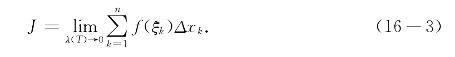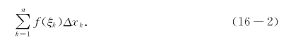 现在可以说明古怪的积分记号的来源了.原来它是由和式(16-2)即转化而来.经过取极限,用拉长的S即∫取代∑,用f(x)取代f(ξk),用dx取代Δxk,