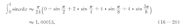 例题16-2 用114方法计算区间上曲线y=sinx之下的区域的面积(图16-4).