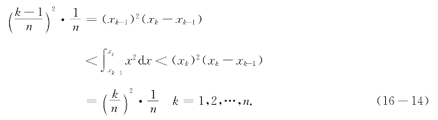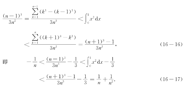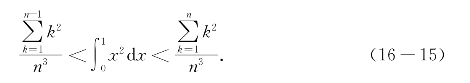 例题16-1 分别用黎曼和的方法和114公式计算区间[0,1]上曲线y=x2之下的区域的面积(图16-3).