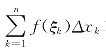 此和称为f(x)在[a,b]上(对应于分法T={Δk}和样本点{ξk}的黎曼和,也称积分和.