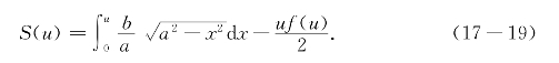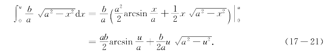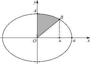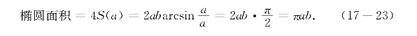 例题17-3 如图17-7,求椭圆=1(a>b>0)的扇形AOB(图中阴影部分)的面积,进而计算椭圆面积.