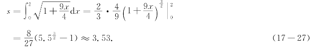 例题17-4 计算曲线y=(0≤x≤2)的弧长(图17-9).
