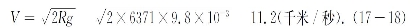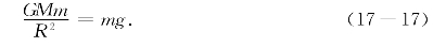 从而有GM=R2g,这里重力加速度g=9.8(米/秒2),地球半径R=6371(千米)代入(17-16)得