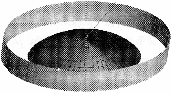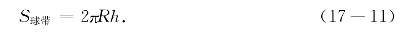 这些公式古希腊科学家阿基米德早已得到了.但我们的方法简单得多.值得一提的是,从(17-12)可知,高和底面直径相等的圆柱,其侧面积等于它的内切球的表面积(图17-5),这是阿基米德自己很满意的发现.更有趣的是,从(17-11)可知,若球的直径等于圆柱底面直径,则其球带或球冠侧面积等于等高的圆柱侧面积,如图17-6,直观上是很难使人相信的!
