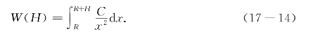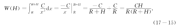 这里G是万有引力常数,M是地球质量.设将物体从与地心距离为u提高到与地心距离为v时克服重力所做的功为w(u,v),w(u,v)显然满足可分性w(u,v)=w(u,w)+w(w,v);另一方面,重力随物体与地心的距离增加而减少,故有(vu)F(v)<w(u,v)<(v-u)F(u).再由F(x)差商有界性可知,若记地球半径为R,GmM=C,由(17-13)可知将物体从地面提升到高度H时所做的功应为